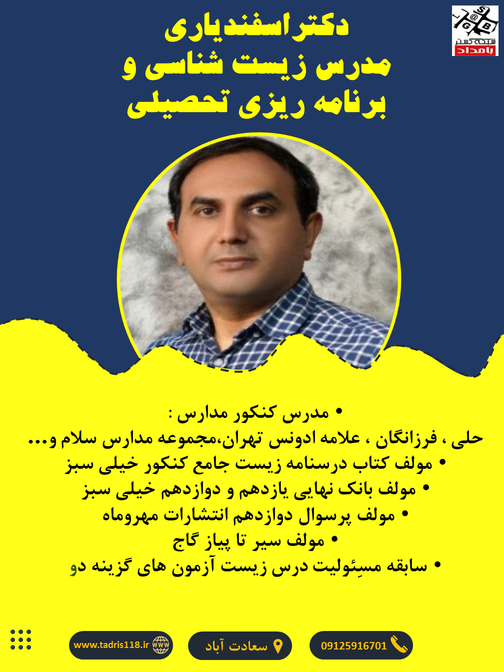 تدریس دروس عمومی متوسطه و اول و دوم و زیست شناسی کنکور